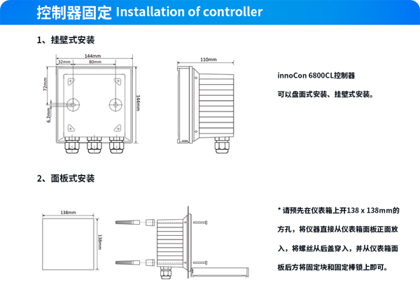 1、innoCon 6800CL余氯/二氧化氯/臭氧控制器